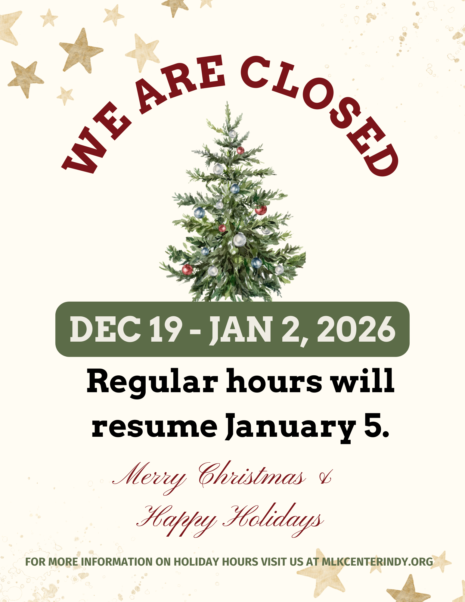 The MLK Center will be closed for the holidays starting December 19 through January 4. Regular hours will resume Monday, January 5, 2026.
